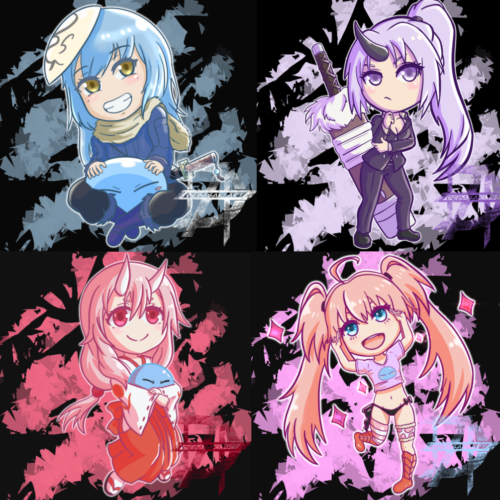 digital illustration of Rimuru, Shion, Shuna, Milim from That Time I Got Reincarnated as a Slime set
