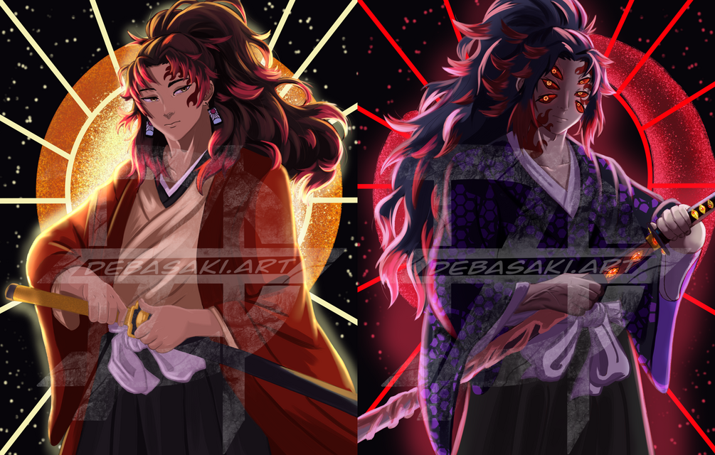 Digital illustration of Kokushibo and Yoriici Tsugikuni from Kimetsu No Yabai